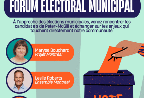 Peter-McGill est un quartier dynamique et historique où l’on retrouve des résident·e·s et étudiant·e·s de tous les âges et de tous horizons. Le comité Vie de quartier vise à favoriser le rassemblement pour donner vie au quartier Peter-McGill!